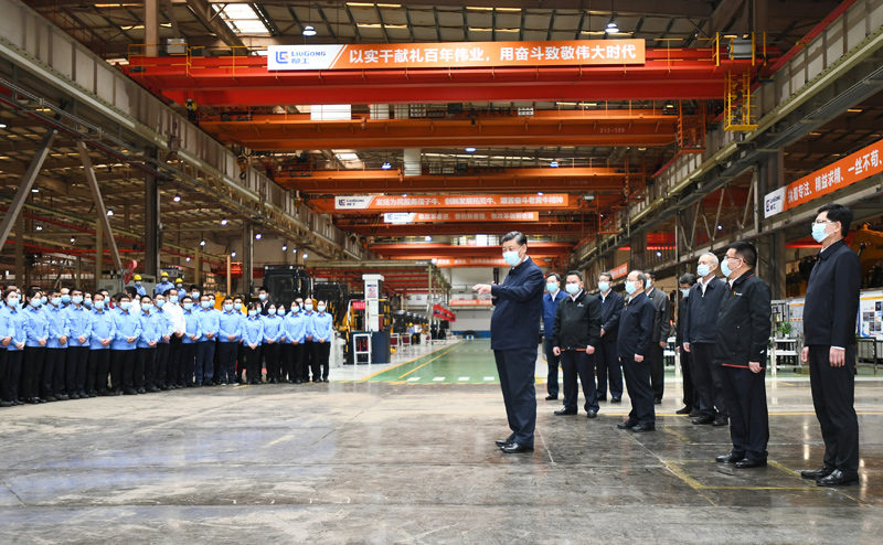當天下午,習近平來到柳州市考察調研。在廣西柳工集團有限公司,習近平先后走進公司展廳、研發實驗中心、挖掘機裝配廠等,聽取企業發展情況介紹,察看主要產品展示,同企業職工和技術研發人員親切交談。習近平強調,制造業高質量發展是我國經濟高質量發展的重中之重,建設社會主義現代化強國、發展壯大實體經濟,都離不開制造業,要在推動產業優化升級上繼續下功夫。只有創新才能自強、才能爭先,要堅定不移走自主創新道路,把創新發展主動權牢牢掌握在自己手中。要堅持黨對國有企業的全面領導,堅持加強黨的領導和完善公司治理相統一,在深化企業改革中搞好黨的建設,充分發揮黨組織在企業改革發展中的領導核心作用。